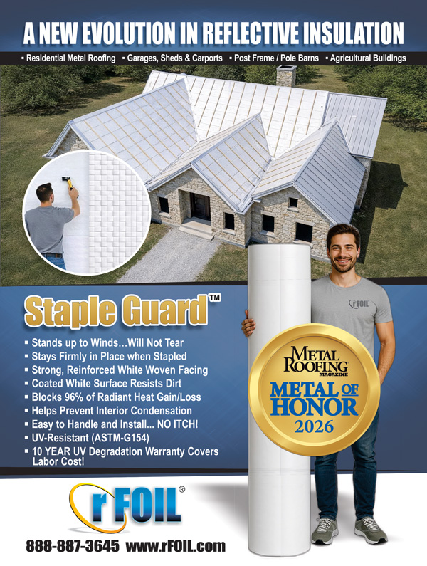 rFOIL Reflective Insulation has been a leading manufacturer of high-quality thermal insulation for the metal building and metal roofing markets for over 35 years. Backed by this successful manufacturing experience, we are honored to have been voted a Metal of Honor winner again this year by the readers of Metal Roofing magazine! Thank you!